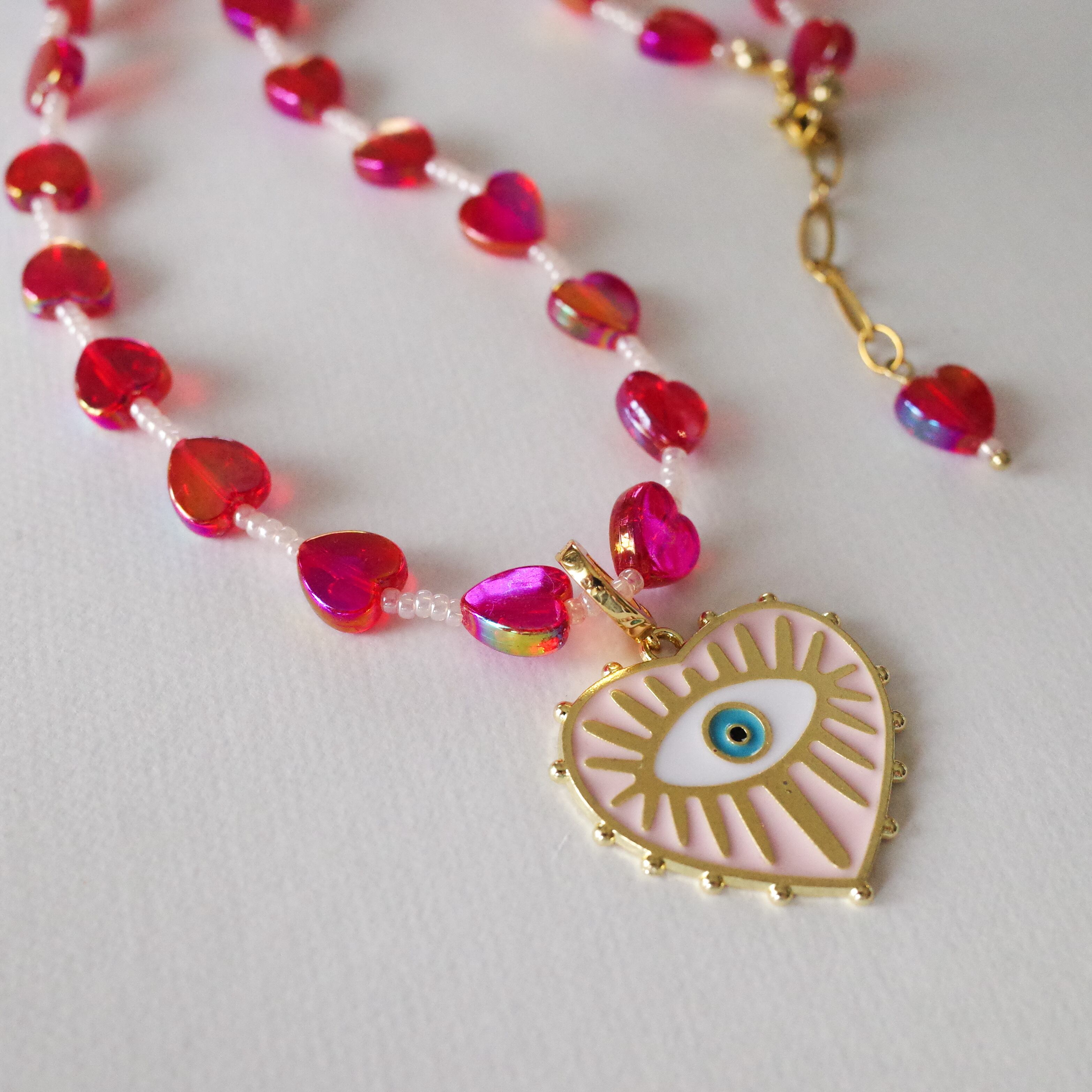 クリッカー金具の開閉でトップを外してビーズネックレスだけで使ったり、トップを別のチェーンに付け替えるなど、複数の楽しみ方ができます。