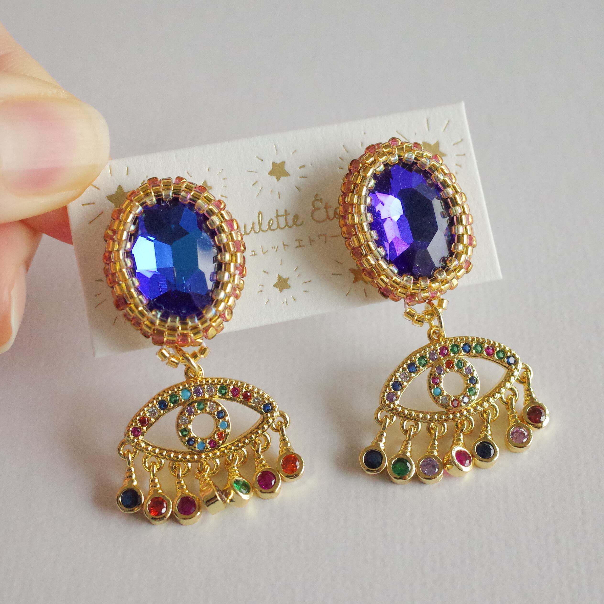 ビーズフレームのビジューの耳飾り/ Evileyes